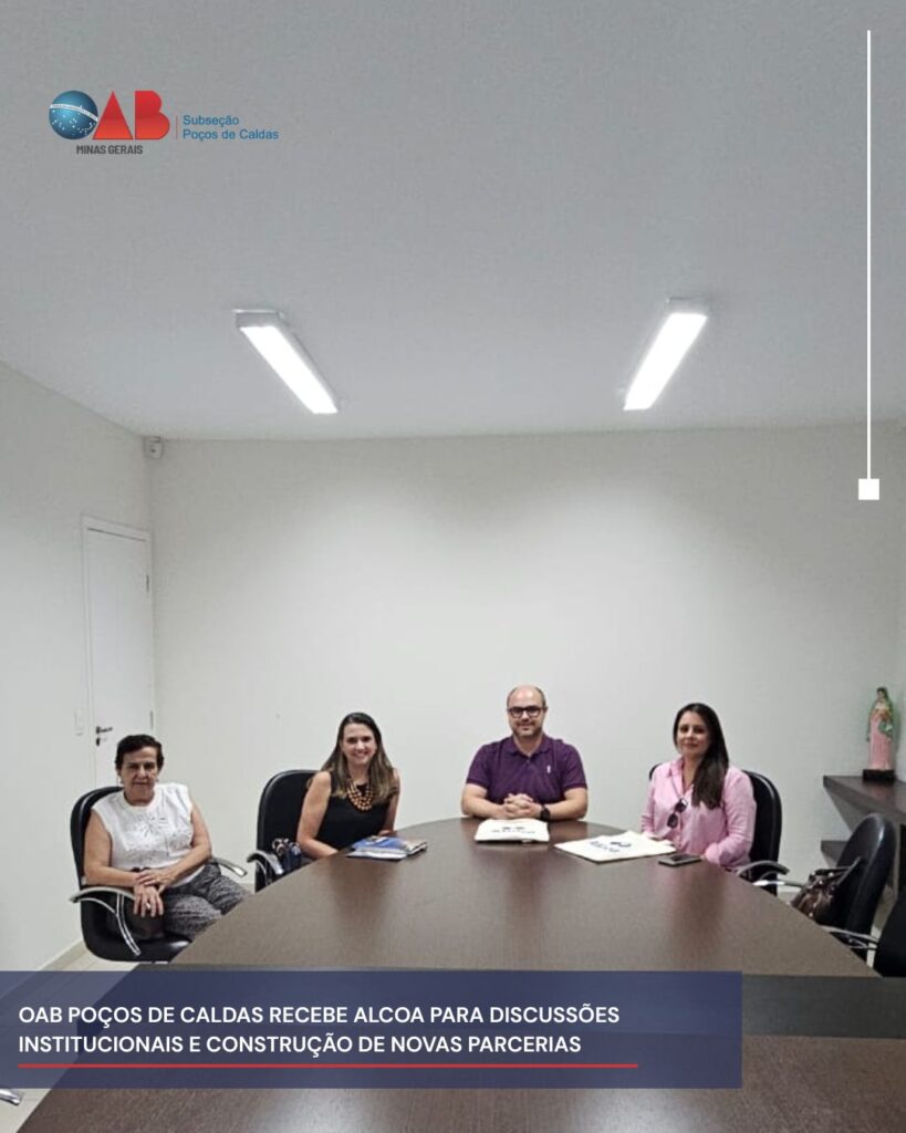 Na última sexta-feira (14), foi realizada uma reunião entre a OAB Poços de Caldas e a Alcoa. O encontro contou com a participação do Presidente da OAB Poços de Caldas, Otacilio Andreatta; Presidente da comissão de Direito Ambiental e Minerário, Isabel Spina, Gerente de Relações Governamentais e Comunicação, Maria Cristina Gonçalves e da consultora de Relações Externas, Ana Maria Luisi.